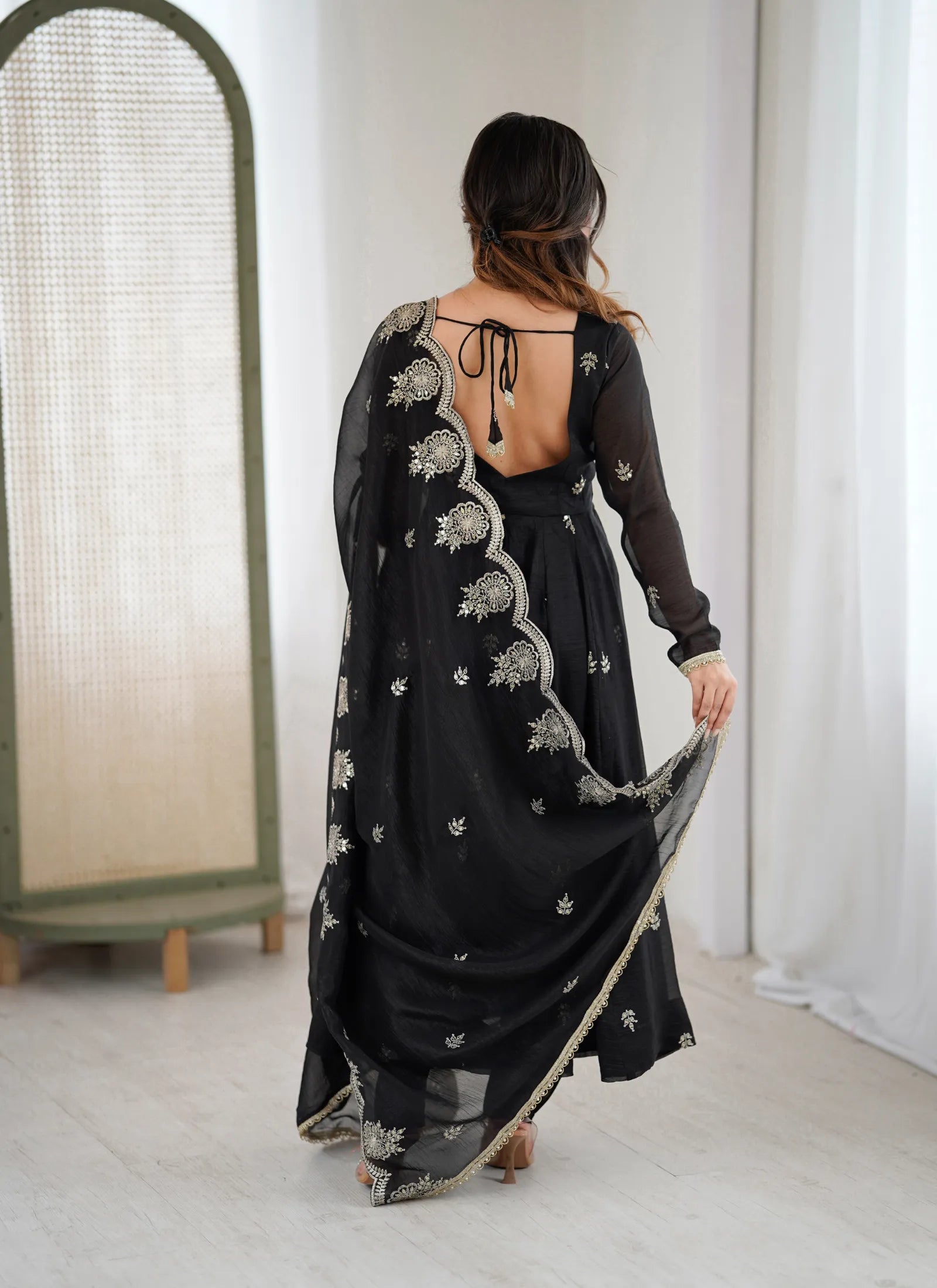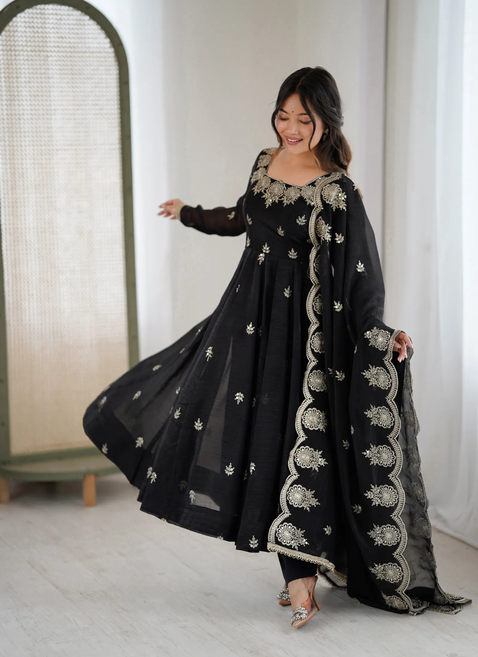 Black Designer Embroidered Anarkali Suit