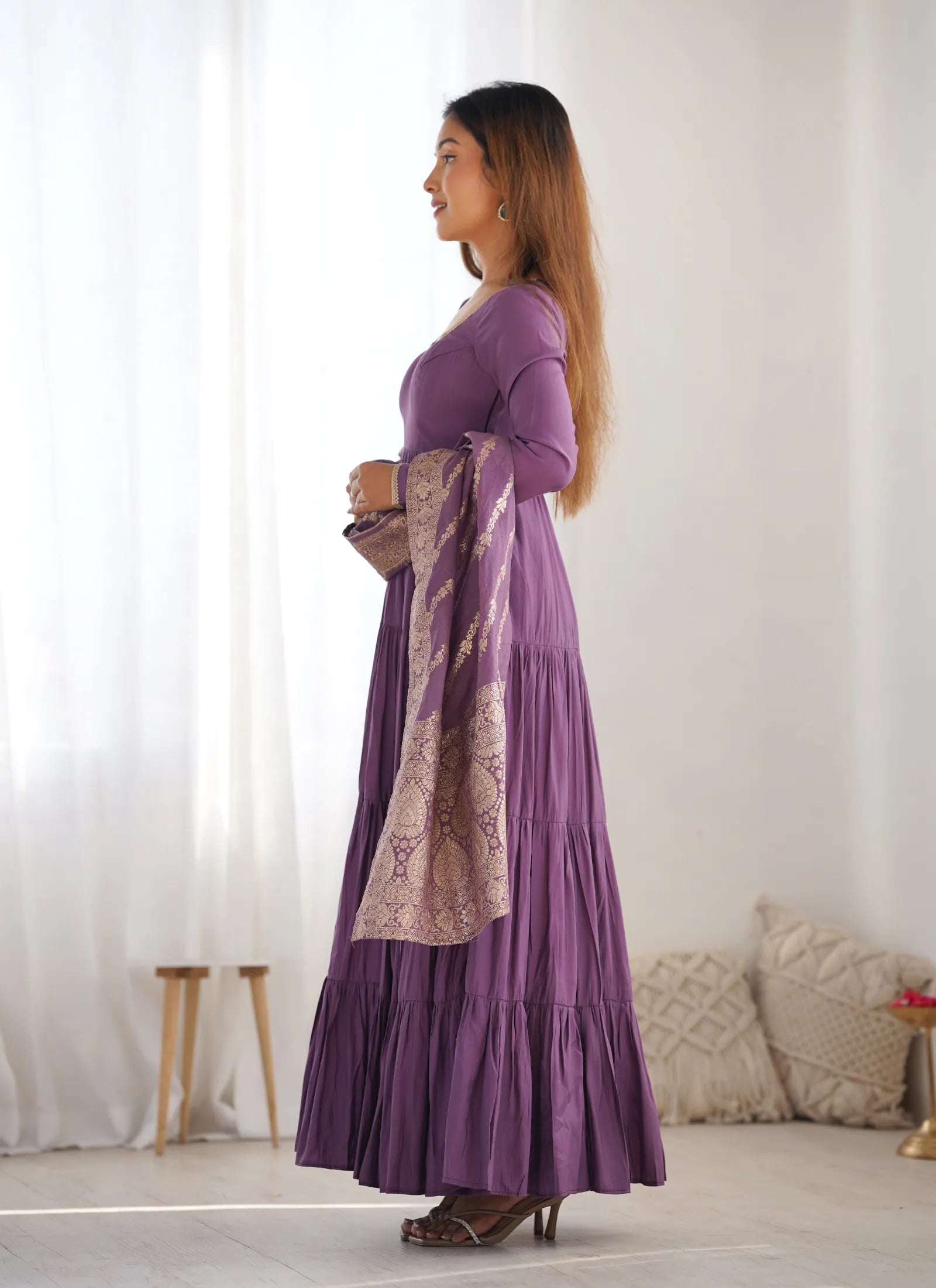 Heavy Pure Romansilk Anarkali Mauve