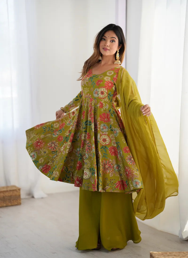 PALAZZO FABRIC: PURE ROMANSILK CHANDERI FREE SIZE FULLY STTICHED