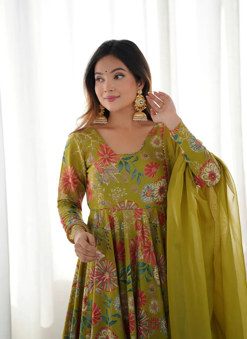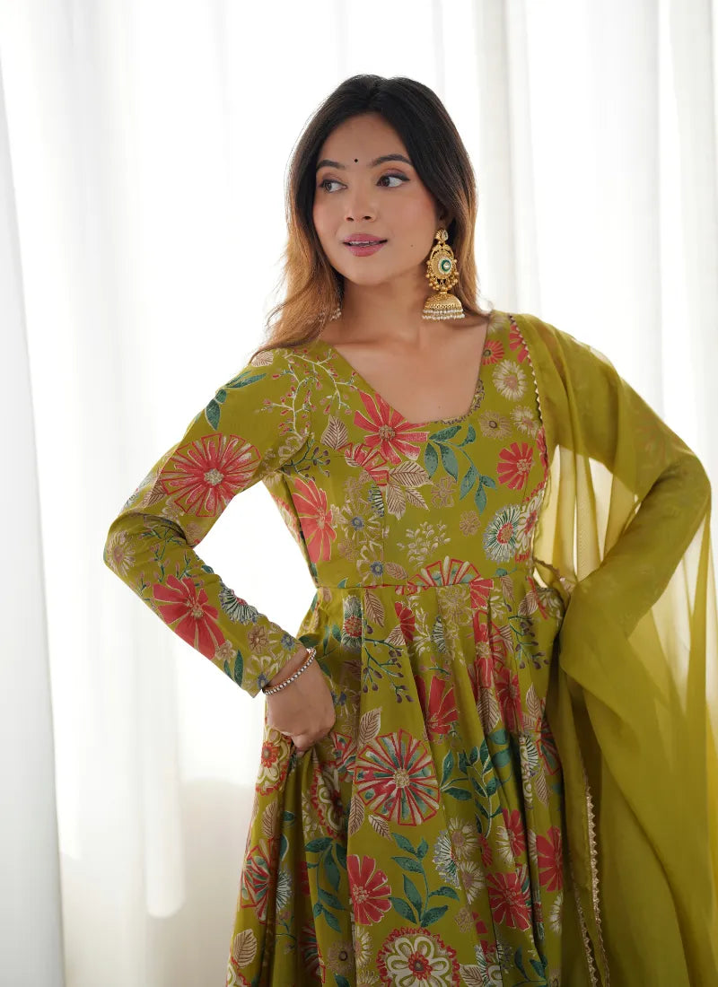 Heavy Pure Soft Romansilk Chanderi Discharge Print Fabric Mehndi