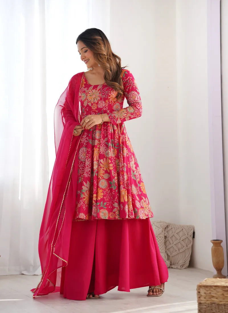 PALAZZO FABRIC: PURE ROMANSILK CHANDERI FREE SIZE FULLY STTICHED