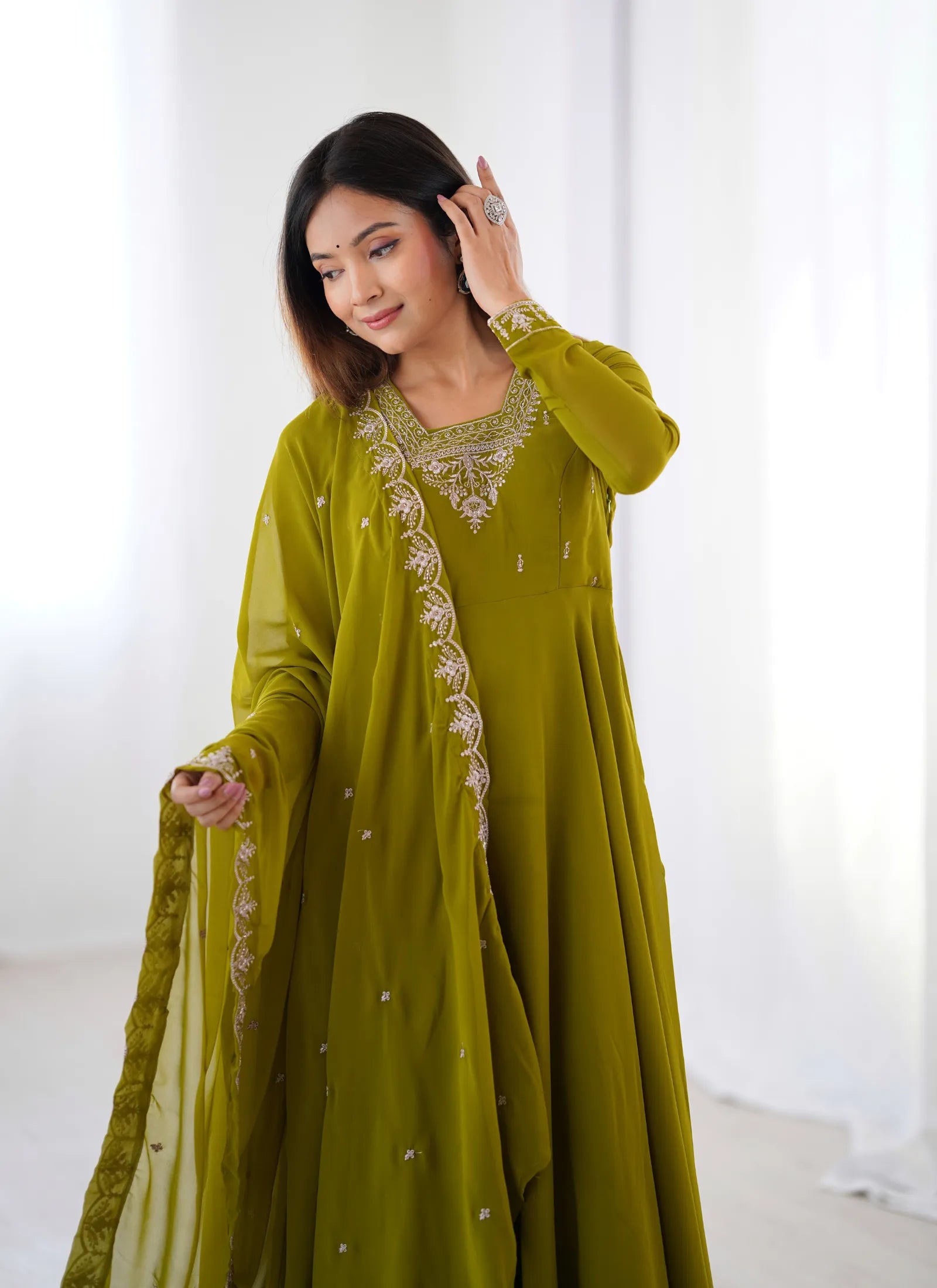 ANARKALI FABRIC: š HEAVY PURE SOFT FOX GEORGETTE FANCY EMBROIDERY BEADS AND JARI WORK