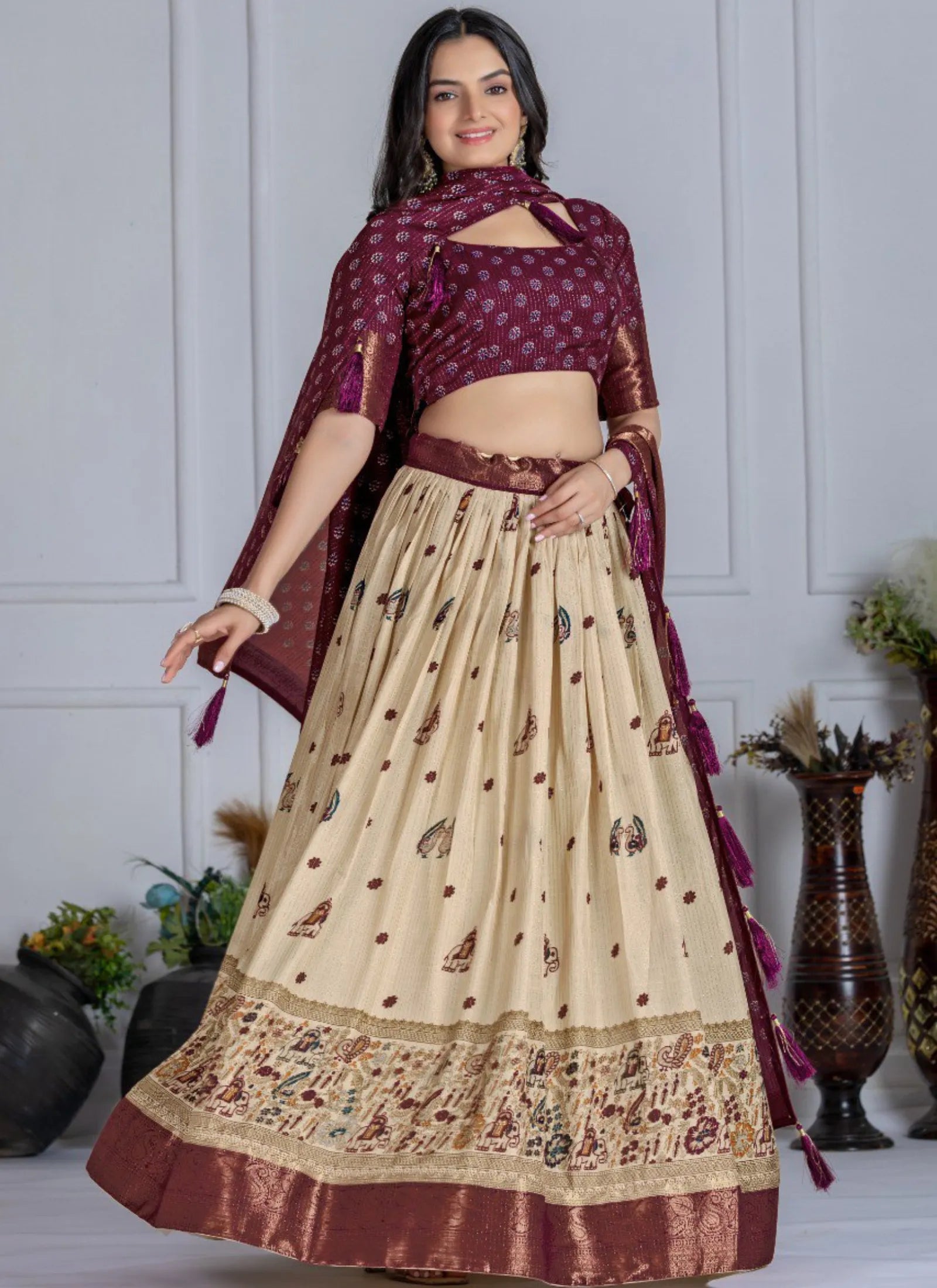 Wine Heavy Lichi Fabric Lehenga Choli